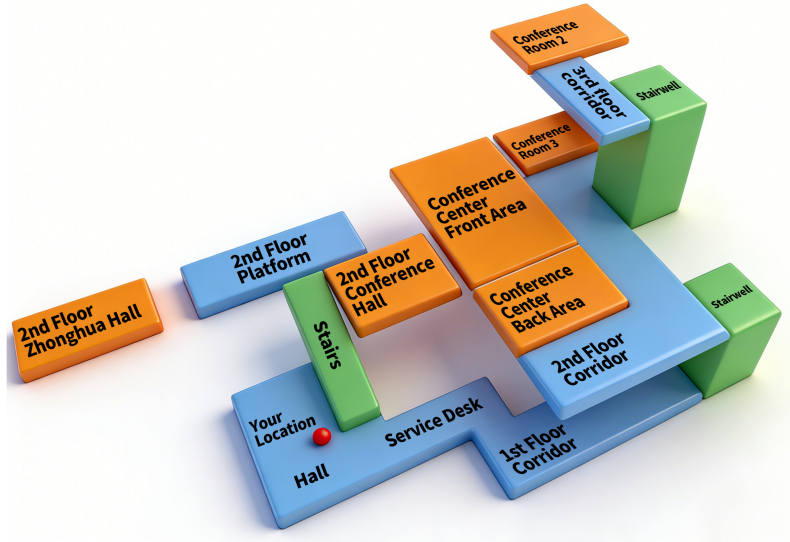 Walk past the hotel front desk, go through the door opposite the front desk, proceed straight to the second floor, then turn right — you will arrive.