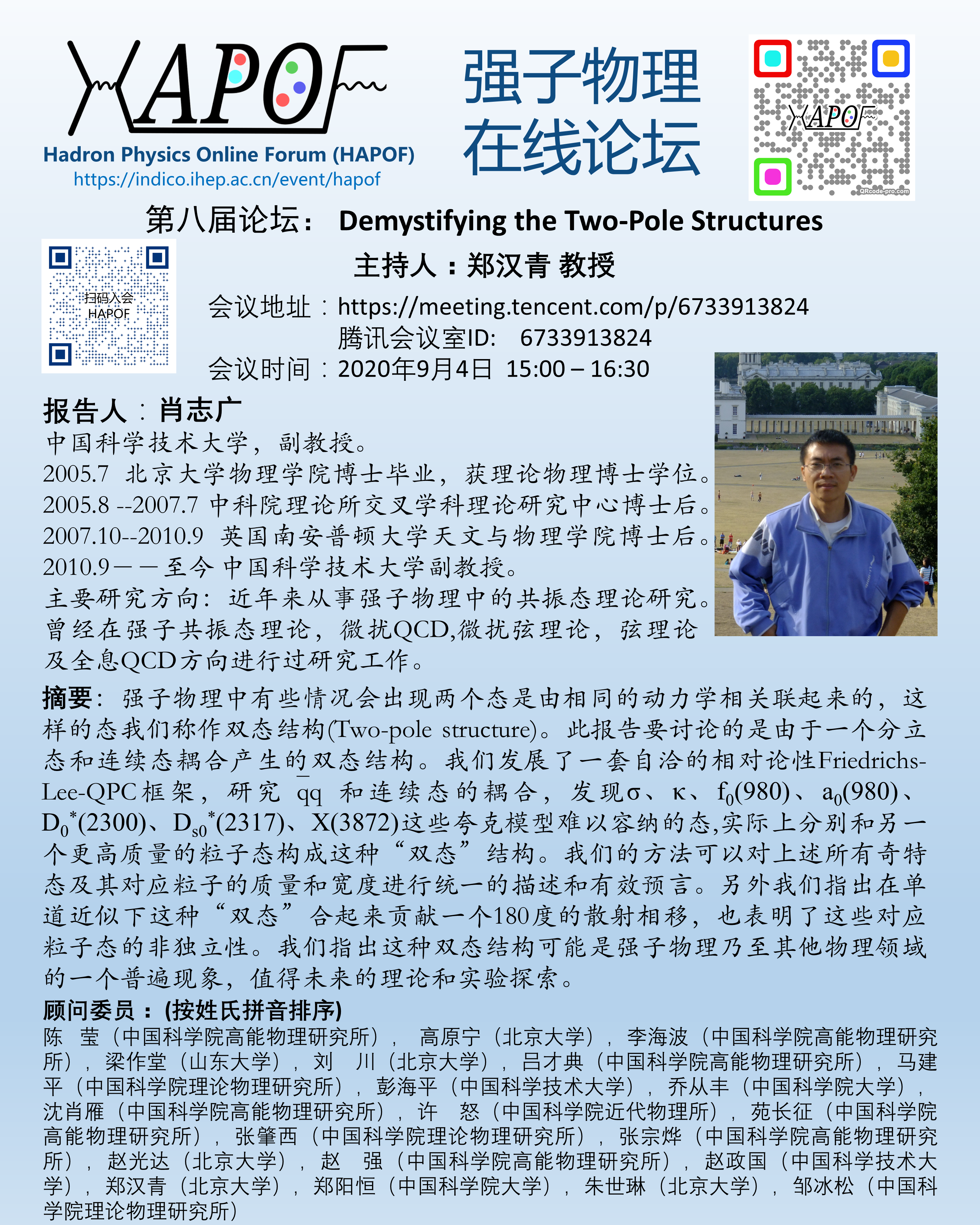 第八届HAPOF论坛,Demystifying the Two-Pole structures,肖志广 教授,2020年09月04日